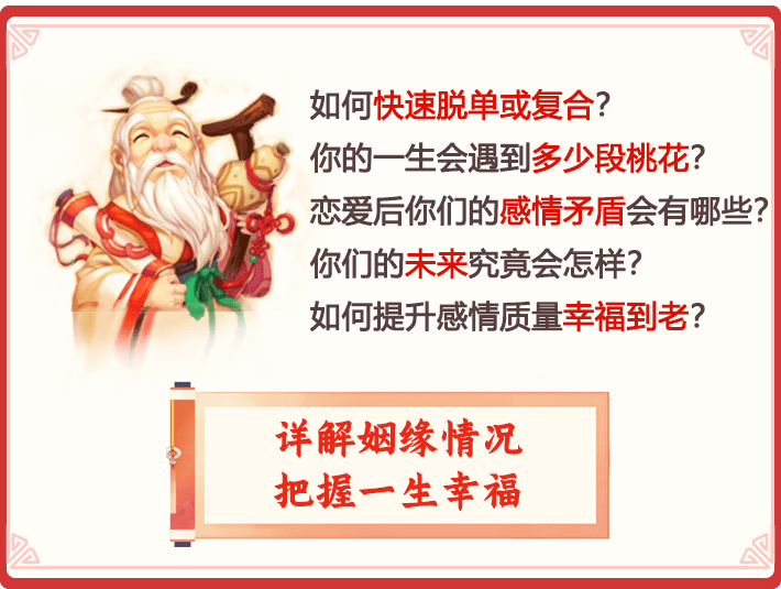 2、在您体验测算服务时,我们需要获取您的姓名和生辰八字(出生日期),为了保证数据准确性,我们建议您提供真实的个人信息,若您提供的信息有错误,会对测算结果的准确性造成偏差。我们保证您的所有个人信息除了用于生成测算数据以外,不会用于其他用途。